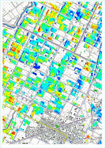 3)水稲移植〜幼穂形成期(5月下旬〜7月上旬)の衛星データから水田を判別し、成熟期(8月下旬〜9月上旬)の衛星データを利用して米粒タンパク含有率を推定することにより、米粒タンパク含有率区分図を作成する事ができた(図2)。