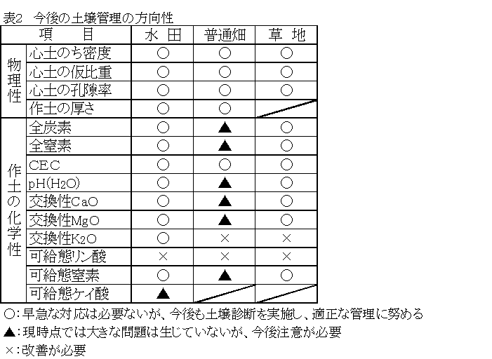 2)今後の土壌管理の方向性(留意すべき調査項目)(表2)