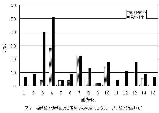 しかし、圃場条件によっては病株の隣接株の新生塊茎でも保菌率が高まることがある。