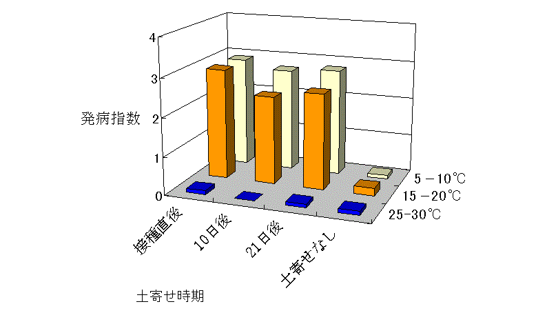 図1 土寄せ、栽培温度と小菌核腐敗病の発生