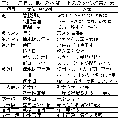 4)暗きょ排水の機能向上のための改善対策を表2に示した。