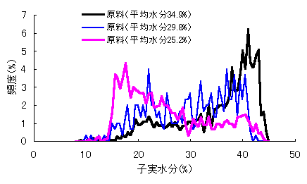 図1 春まき小麦の乾燥前原料の単粒水分分布