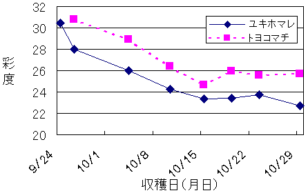 | トヨコマチ | 標植 | 380 | 100 | 2.0 | (9.22) | 291 | 100 | 1.5 | (9.28) |