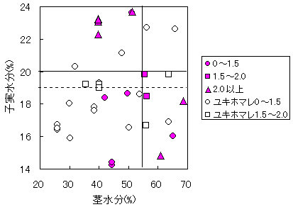 | ユキホマレ | 標植 | 342 | 88 | 1.3 | −13 | 238 | 82 | 1.2 | −10 | 318 | 104 | 0.7 | −9 |