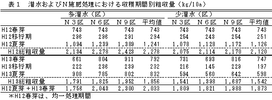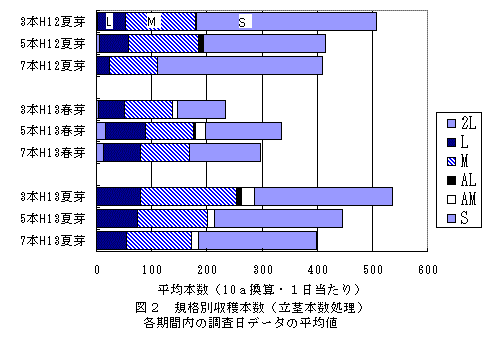(平成12年夏芽と平成13年春芽)した粗収量は、