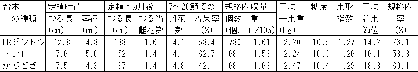 2) 台木用品種では、「FRダントツ」が適当である。(表1)