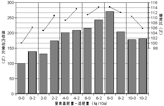 追肥0kg/10a区を100とした比数、1998〜2000年の平均[区により不完全]