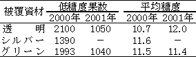 表3 低糖度果数(果/10a)および平均糖度に対するマルチ資材の種類の影響