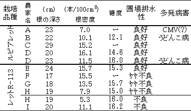 表6 根密度、圃場排水性、発生病害の実態