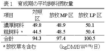 の2つを設け発育等を調べた。なお対照区の濃厚飼料給与量は、平成11年度に提出した