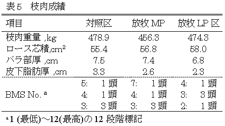 放牧を利用しても肥育増体に負の影響を与えることはなかった(表4)。