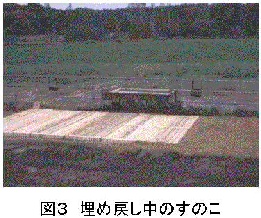 (3)設置箇所の地表面をすのこの厚さだけ掘削し,すのこを置き火山礫で埋め戻した。