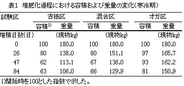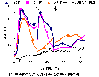 としても易分解性有機物を多く含み、オガクズを用いた場合よりも発酵温度が高く、容積や