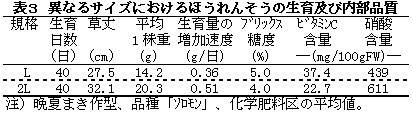 優った(表3)。そこで、生育量(地上部新鮮重)の増加速度(g/日)と内部品質の関係をみると、