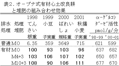 ①深耕により心土が膨軟化し全炭素、熱水抽出性窒素、有効態リン酸、微生物活性などが高まり、