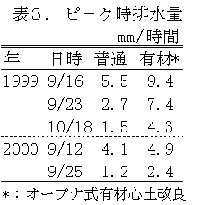 通常のビリ砂利暗渠単独に比べ約2倍の排水能が得られた(表3)。