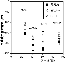 図1.客土が土壌の酸化還元電位に及ぼす影響(1998年、永山)