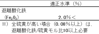 それに伴い、遊離酸化鉄/硫黄モル比も向上した。