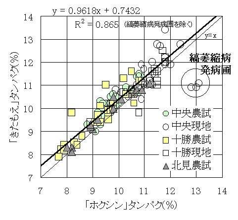 みられる。なお、縞萎縮病発生圃場ではその抵抗性が発揮され、収量を確保し、原粒タンパクが過度に