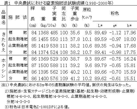 窒素施肥法及び播種期の生育・収量・品質に及ぼす影響