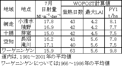 比較すると地域間差は小さかった(表1)。ワーゲニンゲン(オランダ)と道内のPY1の差は