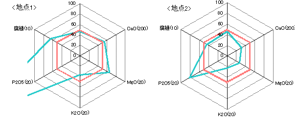 図-3 土壌診断結果の図示(赤:基準値,青:現地)