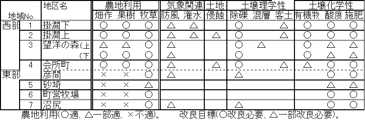 表-4 気象・土壌総合評価による農地利用区分と改良目標