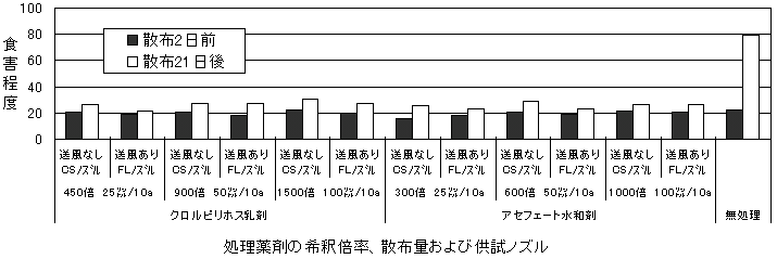 (供試薬剤:クロルピリホス乳剤、アセフェート水和剤、アセフェート水溶剤、