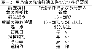 3)発病の好適条件は温度が10〜20℃,葉面の濡れ時間が15〜20℃で24時間以上,