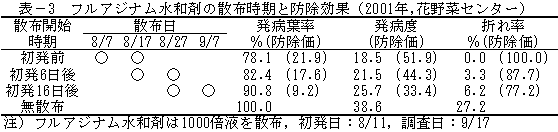有する(1000倍,茎葉散布,収穫21日前まで,3回以内)(表−3,4)。