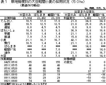 「大豆−畦間小麦」を作業競合回避のため採用する可能性が高いと指摘できる。