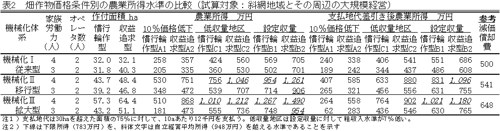 十勝・網走地域における規模拡大の所得拡充効果と規模拡大の技術的経済的限界を