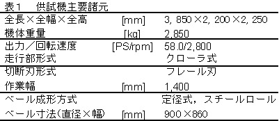 1) 供試機はフレール式刈取部と定径式ロールベーラを組み合わせた自走式ベーラである