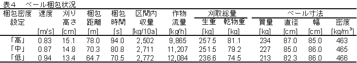 3) ベーラは梱包密度を3段階に設定可能であり,高く設定すると1行程当たり作業距離を伸ばし