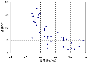 重要であり、また水分調整材の種類によって、同じ水分でも容積重は大きく