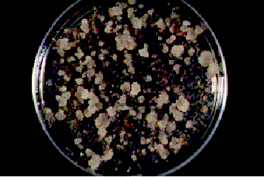 懸濁培養細胞をビアラホス耐性カルスの選抜のために2mg/l ビアラホス,