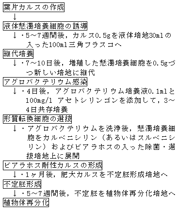 2)この形質転換法は,カルスからの植物体再分化能の高い系統「NK-219mm-O」を材料に,