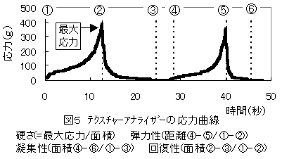 測定条件 2回圧縮法(TPAプログラム)、φ35mmシリンダープローブ、圧縮率70%