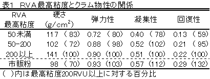 このことから、最高粘度が極めて低い小麦粉から調整したパンの物性は、比較的最高粘度が高い