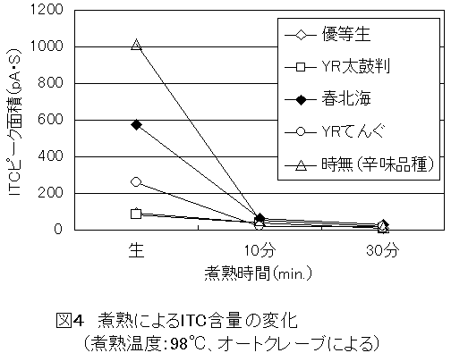 より、ITC含量はいずれの品種においても著しく減少した(図4)。