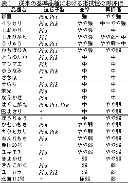 この基準品種は、Pia、Pii、Pikの抵抗性遺伝子のみをもつ品種に適用される。