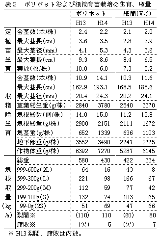 (2)紙筒V-5育苗とポリポット育苗の比較(平成13,14年)