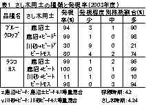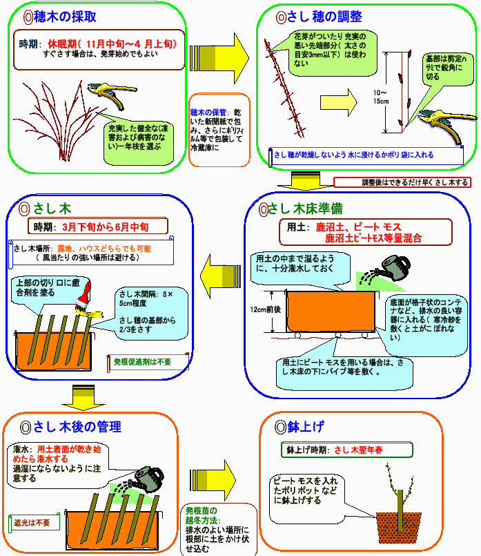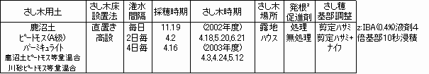 採穂時期:4.2 さし木時期:4.18(2002年度),4.24(2003年度)