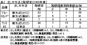 本試験の結果を組み合わせた新方式は、従来法に比べ発根率は大幅に向上し、作業的には簡略化された(表2、図1)。