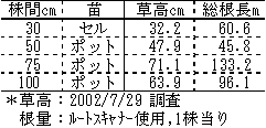 定植期:2001年6月20、21日(試験(2)も同じ)