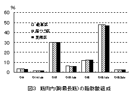 (6) 筋肉内脂肪の脂肪酸組成は処理区間で差がなかった(図3)。