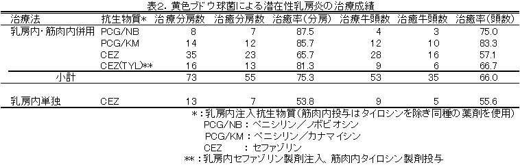 2)黄色ブドウ球菌による乳房炎の泌乳期治療