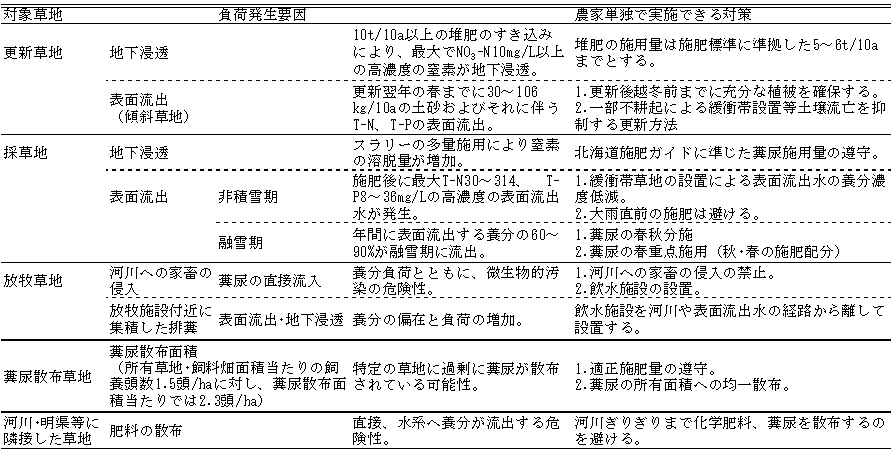 以上の結果を酪農・畜産場における草地からの養分流出に関する軽減対策とした(表3)。