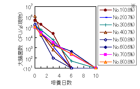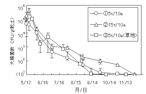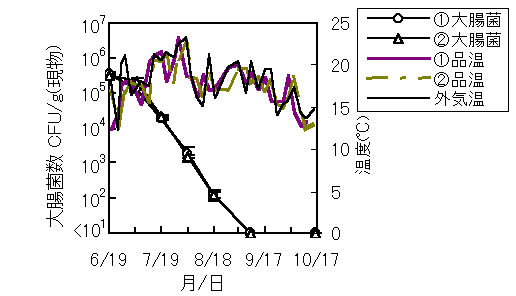 図2 スラリー貯留過程における大腸菌の消長