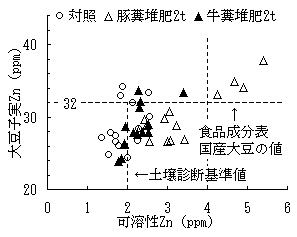 堆肥中に含まれる微量要素(亜鉛・銅)の大豆等豆類への施用効果および土壌蓄積への影響を検討し適正な施用を行うための知見を得る。